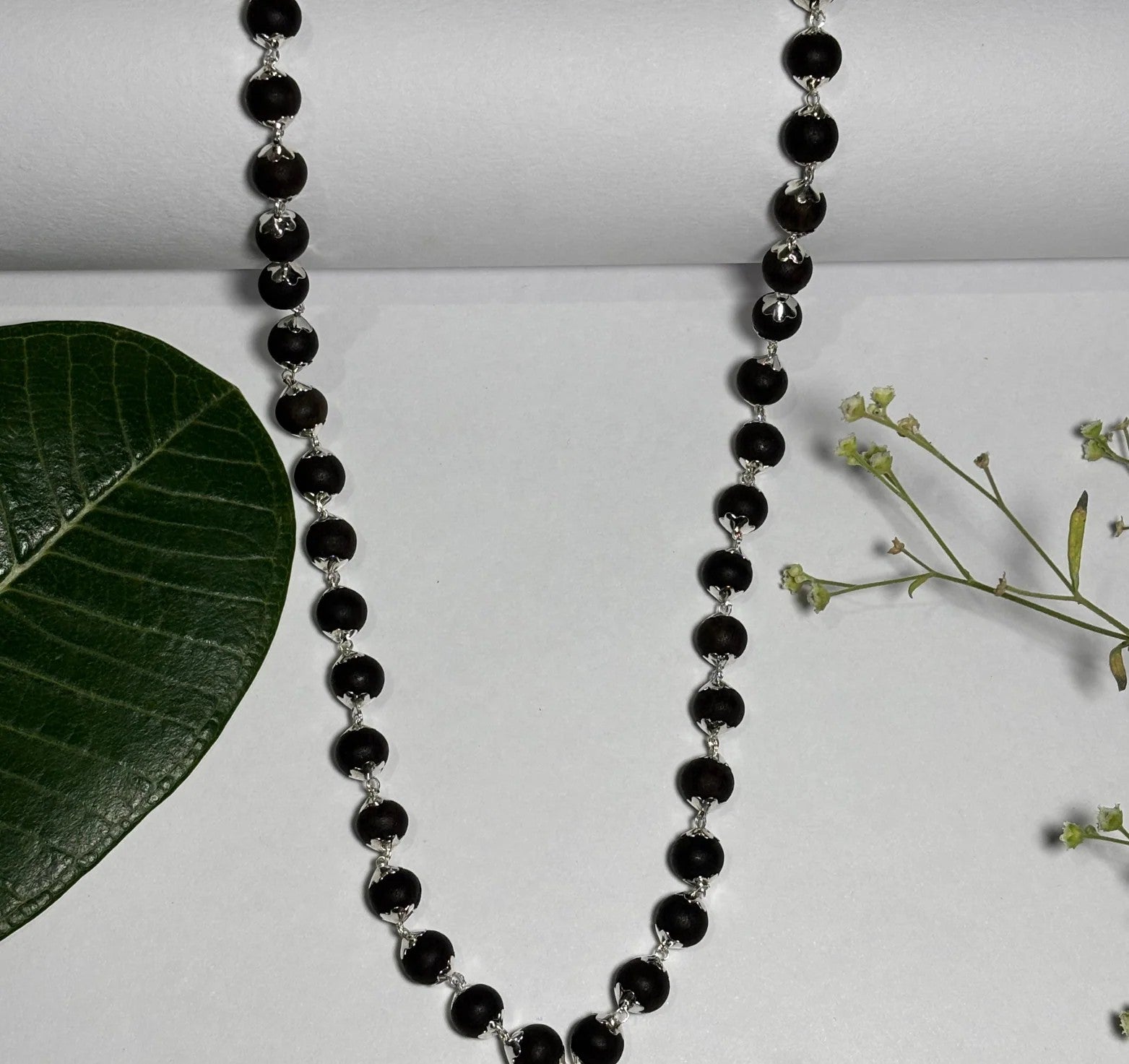 Whether worn during meditation, prayer, or as a fashion statement, the Karungali Malai Silver Cap Necklace serves as a powerful reminder of your spiritual path and inner strength.
